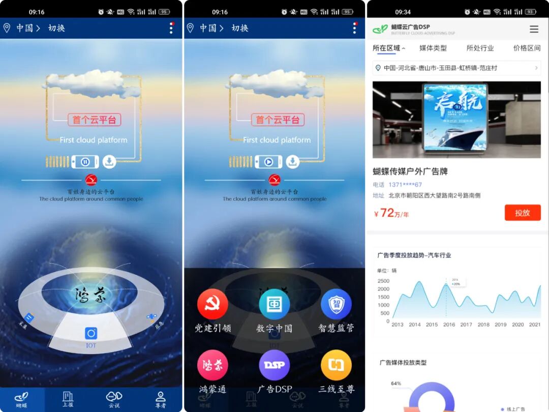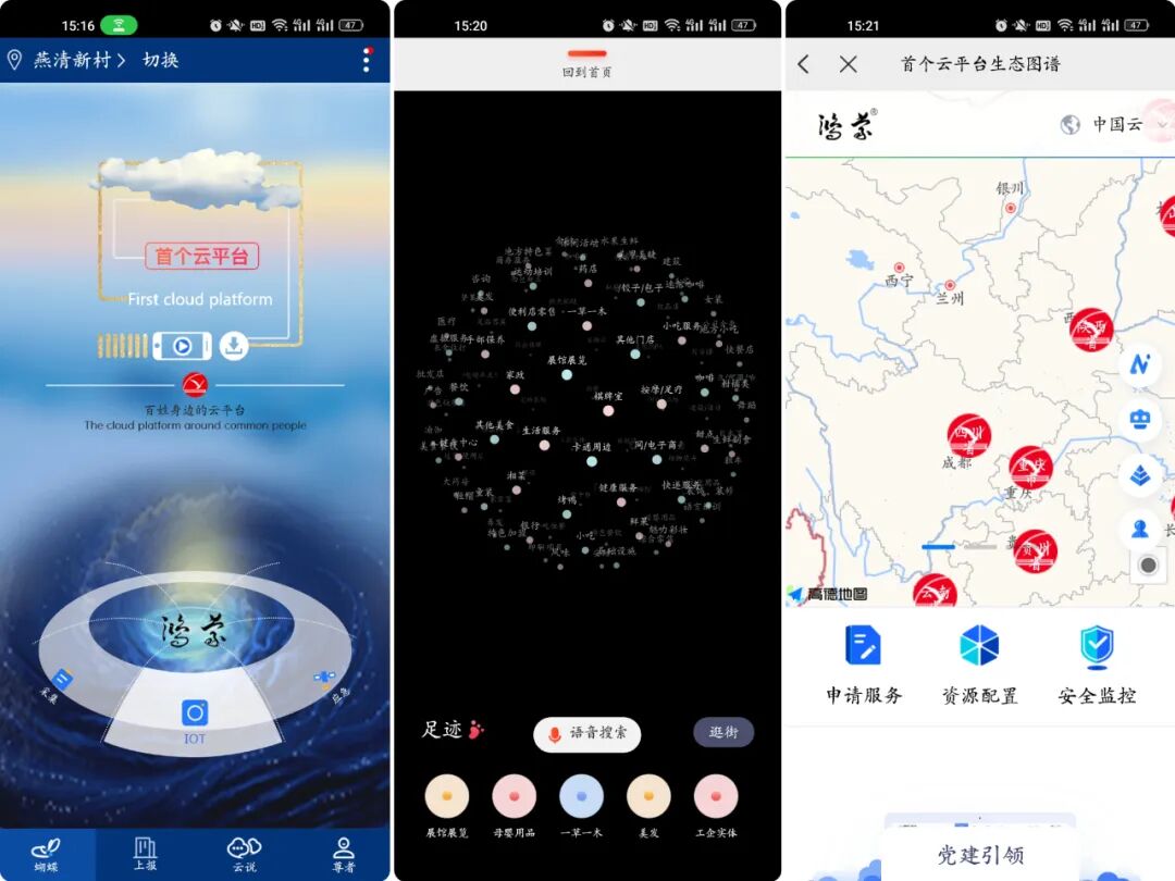 打开蝴蝶云APP,点击首页面中间“鸿蒙”二字,即可进入本地生活圈。想看看自己周边有什么,找想什么语音搜索就可以了,衣食住行、吃喝玩乐皆可采集入驻。